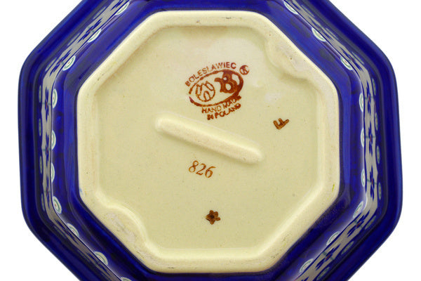 This Flowering Peacock 7" Octagonal Bowl was handmade and hand decorated in Boleslawiec, Poland by skilled artisans according to old traditional methods. This Polish stoneware is microwave, dishwasher, freezer, and oven safe up to 480°F. It does not contain lead or cadmium. It is part of the Flowering Peacock Collection.