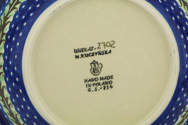 This Rooster Dance 8" Pasta Bowl was handmade and hand decorated in Boleslawiec, Poland by skilled artisans according to old traditional methods. This is a Polish pottery Signature Unikat, which means that it has been hand painted with both sponges and brushes and it is signed by the artist who painted it. Unikat pieces are the most intricate works of art. Larger Unikat items take hours of very careful work to finish. This Polish stoneware is microwave, dishwasher, freezer, and oven safe up to 480°F. It does not contain lead or cadmium. It is part of the Rooster Dance Collection.