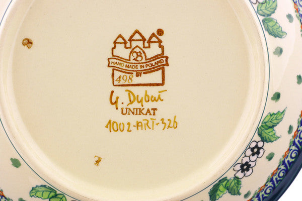 This Flower Heaven 9" Pasta Bowl was handmade and hand decorated in Boleslawiec, Poland by skilled artisans according to old traditional methods. This is a Polish pottery Signature Unikat, which means that it has been hand painted with both sponges and brushes and it is signed by the artist who painted it. Unikat pieces are the most intricate works of art. Larger Unikat items take hours of very careful work to finish. This Polish stoneware is microwave, dishwasher, freezer, and oven safe up to 480°F. It does not contain lead or cadmium. It is part of the Flower Heaven Collection.