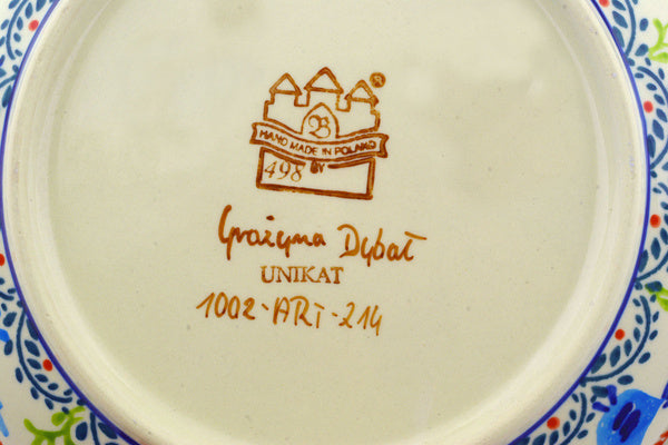 This Vine Birds 9" Pasta Bowl was handmade and hand decorated in Boleslawiec, Poland by skilled artisans according to old traditional methods. This is a Polish pottery Signature Unikat, which means that it has been hand painted with both sponges and brushes and it is signed by the artist who painted it. Unikat pieces are the most intricate works of art. Larger Unikat items take hours of very careful work to finish. This Polish stoneware is microwave, dishwasher, freezer, and oven safe up to 480°F. It does not contain lead or cadmium. It is part of the Vine Birds Collection.