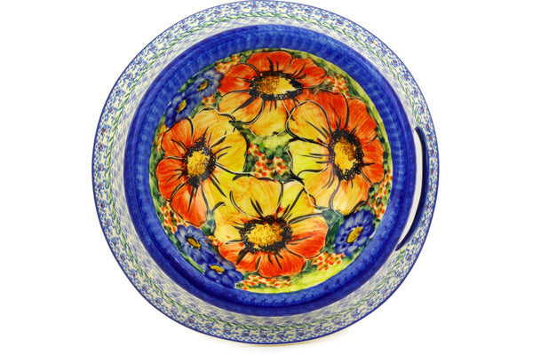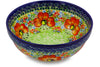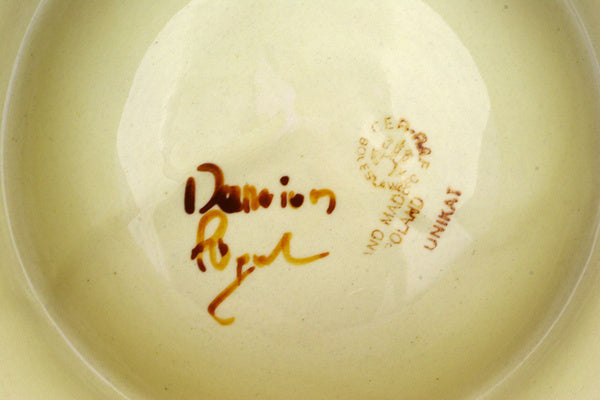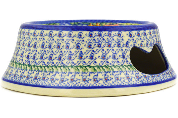 This Mystical Garden 9" Pet Bowl was handmade and hand decorated in Boleslawiec, Poland by skilled artisans according to old traditional methods. This is a Polish pottery Signature Unikat, which means that it has been hand painted with both sponges and brushes and it is signed by the artist who painted it. Unikat pieces are the most intricate works of art. Larger Unikat items take hours of very careful work to finish. This Polish stoneware is microwave, dishwasher, freezer, and oven safe up to 480°F. It does not contain lead or cadmium. It is part of the Mystical Garden Collection.