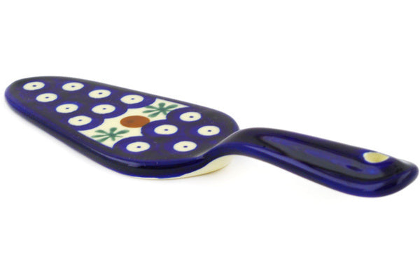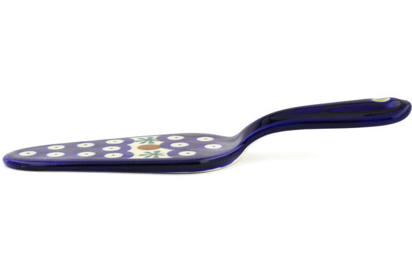 This Mosquito 7" Pie and Cake Server was handmade and hand decorated in Boleslawiec, Poland by skilled artisans according to old traditional methods. This Polish stoneware is microwave, dishwasher, freezer, and oven safe up to 480°F. It does not contain lead or cadmium. It is part of the Mosquito Collection.