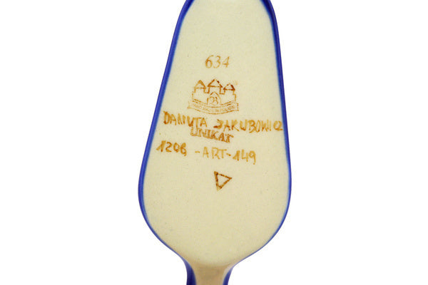 This Spring Splendor 7" Pie and Cake Server was handmade and hand decorated in Boleslawiec, Poland by skilled artisans according to old traditional methods. This is a Polish pottery Signature Unikat, which means that it has been hand painted with both sponges and brushes and it is signed by the artist who painted it. Unikat pieces are the most intricate works of art. Larger Unikat items take hours of very careful work to finish. This Polish stoneware is microwave, dishwasher, freezer, and oven safe up to 480°F. It does not contain lead or cadmium. It is part of the Spring Splendor Collection.
