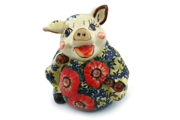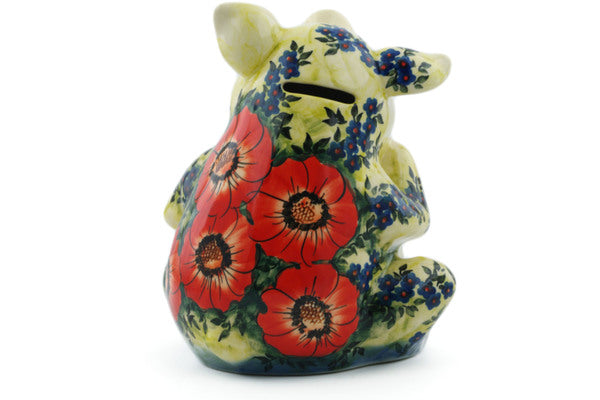 This Midnight Garden 7" Piggy Bank was handmade and hand decorated in Boleslawiec, Poland by skilled artisans according to old traditional methods. This is a Polish pottery Signature Unikat, which means that it has been hand painted with both sponges and brushes and it is signed by the artist who painted it. Unikat pieces are the most intricate works of art. Larger Unikat items take hours of very careful work to finish. This Polish stoneware is microwave, dishwasher, freezer, and oven safe up to 480°F. It does not contain lead or cadmium. It is part of the Midnight Garden Collection.