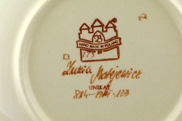 This Prairie Sunrise 7" Plate was handmade and hand decorated in Boleslawiec, Poland by skilled artisans according to old traditional methods. This is a Polish pottery Signature Unikat, which means that it has been hand painted with both sponges and brushes and it is signed by the artist who painted it. Unikat pieces are the most intricate works of art. Larger Unikat items take hours of very careful work to finish. This Polish stoneware is microwave, dishwasher, freezer, and oven safe up to 480°F. It does not contain lead or cadmium. It is part of the Prairie Sunrise Collection.