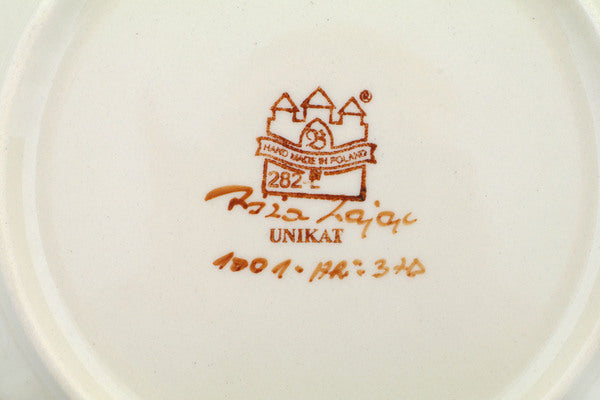 This Pink Delight 9" Plate was handmade and hand decorated in Boleslawiec, Poland by skilled artisans according to old traditional methods. This is a Polish pottery Signature Unikat, which means that it has been hand painted with both sponges and brushes and it is signed by the artist who painted it. Unikat pieces are the most intricate works of art. Larger Unikat items take hours of very careful work to finish. This Polish stoneware is microwave, dishwasher, freezer, and oven safe up to 480°F. It does not contain lead or cadmium. It is part of the Pink Delight Collection.