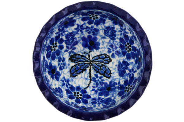 This Misty Dragonfly 3" Scalloped Bowl was handmade and hand decorated in Boleslawiec, Poland by skilled artisans according to old traditional methods. This Polish stoneware is microwave, dishwasher, freezer, and oven safe up to 480°F. It does not contain lead or cadmium. It is part of the Misty Dragonfly Collection.