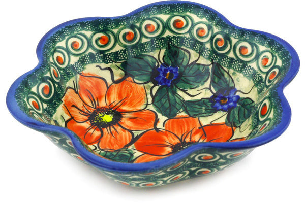This Havana 8" Scalloped Fluted Bowl was handmade and hand decorated in Boleslawiec, Poland by skilled artisans according to old traditional methods. This is a Polish pottery Signature Unikat, which means that it has been hand painted with both sponges and brushes and it is signed by the artist who painted it. Unikat pieces are the most intricate works of art. Larger Unikat items take hours of very careful work to finish. This Polish stoneware is microwave, dishwasher, freezer, and oven safe up to 480°F. It does not contain lead or cadmium. It is part of the Havana Collection.