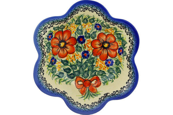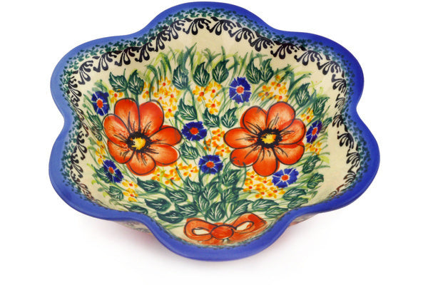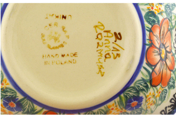 This Wild Bouquet 8" Scalloped Fluted Bowl was handmade and hand decorated in Boleslawiec, Poland by skilled artisans according to old traditional methods. This is a Polish pottery Signature Unikat, which means that it has been hand painted with both sponges and brushes and it is signed by the artist who painted it. Unikat pieces are the most intricate works of art. Larger Unikat items take hours of very careful work to finish. This Polish stoneware is microwave, dishwasher, freezer, and oven safe up to 480°F. It does not contain lead or cadmium. It is part of the Wild Bouquet Collection.