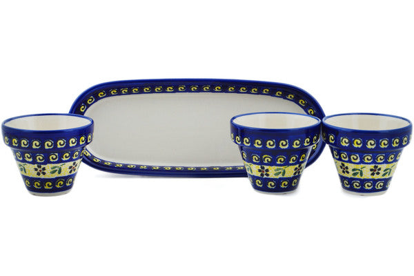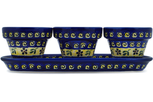 This Stargazer Fields 11" Set of 3 Planters was handmade and hand decorated in Boleslawiec, Poland by skilled artisans according to old traditional methods. This Polish stoneware is microwave, dishwasher, freezer, and oven safe up to 480°F. It does not contain lead or cadmium. It is part of the Stargazer Fields Collection.