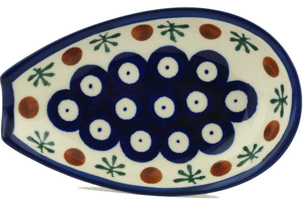 This Mosquito 5" Spoon Rest was handmade and hand decorated in Boleslawiec, Poland by skilled artisans according to old traditional methods. This Polish stoneware is microwave, dishwasher, freezer, and oven safe up to 480°F. It does not contain lead or cadmium. It is part of the Mosquito Collection.