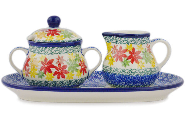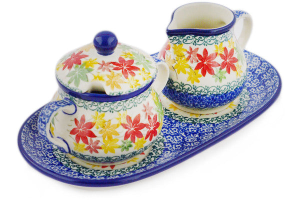 This Fall Vibes 10" Sugar and Creamer Set was handmade and hand decorated in Boleslawiec, Poland by skilled artisans according to old traditional methods. This Polish stoneware is microwave, dishwasher, freezer, and oven safe up to 480°F. It does not contain lead or cadmium. It is part of the Fall Vibes Collection.