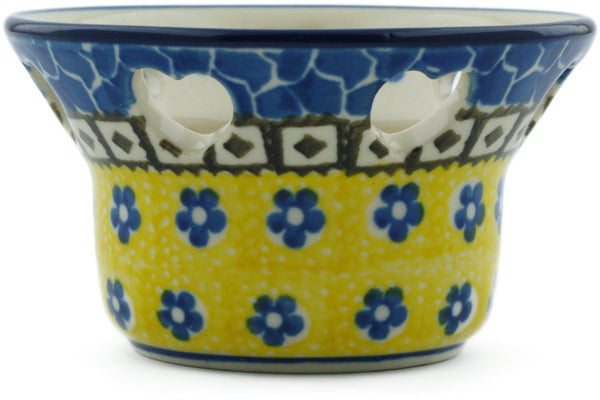 This Sunburst Daisies 4" Candle Holder was handmade and hand decorated in Boleslawiec, Poland by skilled artisans according to old traditional methods. This Polish stoneware is microwave, dishwasher, freezer, and oven safe up to 480°F. It does not contain lead or cadmium. It is part of the Sunburst Daisies Collection.