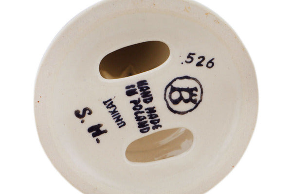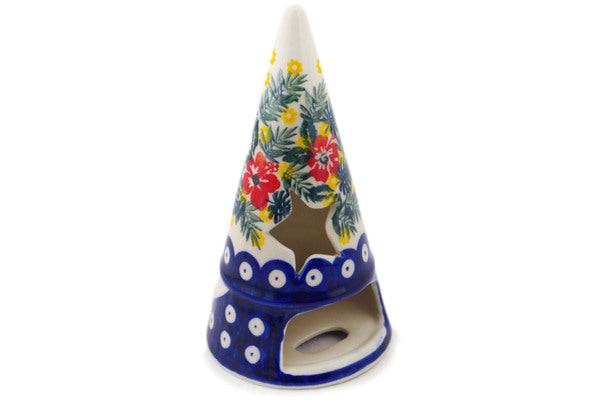 This Tropical Peacock 7" Candle Holder was handmade and hand decorated in Boleslawiec, Poland by skilled artisans according to old traditional methods. This is a Polish pottery Signature Unikat, which means that it has been hand painted with both sponges and brushes and it is signed by the artist who painted it. Unikat pieces are the most intricate works of art. Larger Unikat items take hours of very careful work to finish. This Polish stoneware is microwave, dishwasher, freezer, and oven safe up to 480°F. It does not contain lead or cadmium. It is part of the Tropical Peacock Collection.