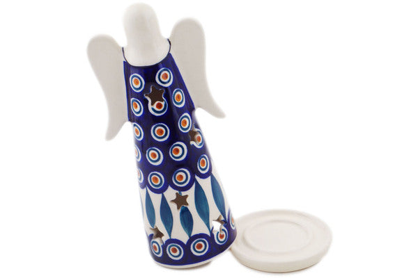 This Peacock Leaves 8" Candle Holder was handmade and hand decorated in Boleslawiec, Poland by skilled artisans according to old traditional methods. This Polish stoneware is microwave, dishwasher, freezer, and oven safe up to 480°F. It does not contain lead or cadmium. It is part of the Peacock Leaves Collection.