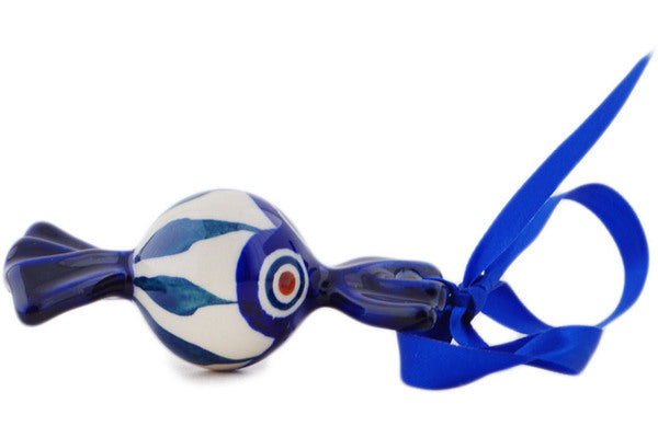 This Peacock Leaves 3" Candy Ornament was handmade and hand decorated in Boleslawiec, Poland by skilled artisans according to old traditional methods. This Polish stoneware is microwave, dishwasher, freezer, and oven safe up to 480°F. It does not contain lead or cadmium. It is part of the Peacock Leaves Collection.