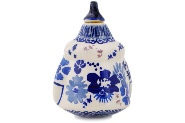 This Periwinkle Sweetness 4" Christmas Ball Ornament was handmade and hand decorated in Boleslawiec, Poland by skilled artisans according to old traditional methods. This is a Polish pottery Signature Unikat, which means that it has been hand painted with both sponges and brushes and it is signed by the artist who painted it. Unikat pieces are the most intricate works of art. Larger Unikat items take hours of very careful work to finish. This Polish stoneware is microwave, dishwasher, freezer, and oven safe up to 480°F. It does not contain lead or cadmium. It is part of the Periwinkle Sweetness Collection.