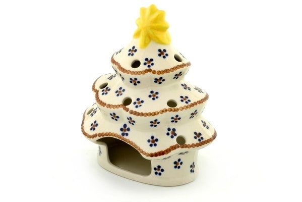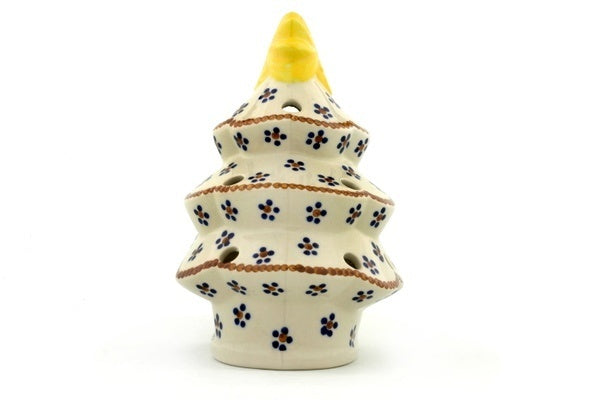 This Five Dot Daisy 7" Christmas Tree Candle Holder was handmade and hand decorated in Boleslawiec, Poland by skilled artisans according to old traditional methods. This Polish stoneware is microwave, dishwasher, freezer, and oven safe up to 480°F. It does not contain lead or cadmium. It is part of the Five Dot Daisy Collection.