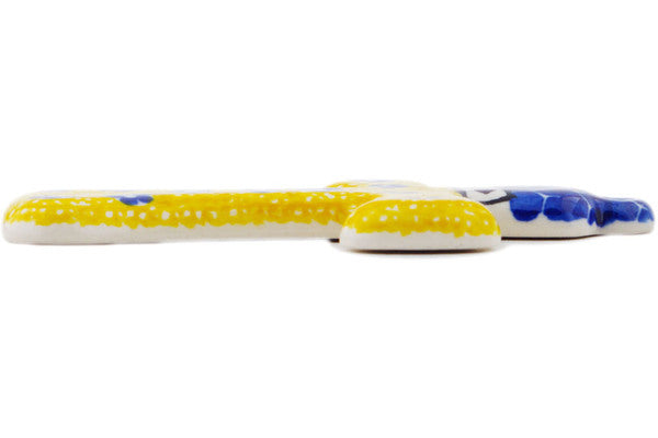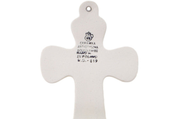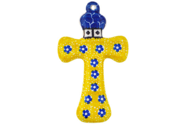 This Sunburst Daisies 5" Cross was handmade and hand decorated in Boleslawiec, Poland by skilled artisans according to old traditional methods. This Polish stoneware is microwave, dishwasher, freezer, and oven safe up to 480°F. It does not contain lead or cadmium. It is part of the Sunburst Daisies Collection.