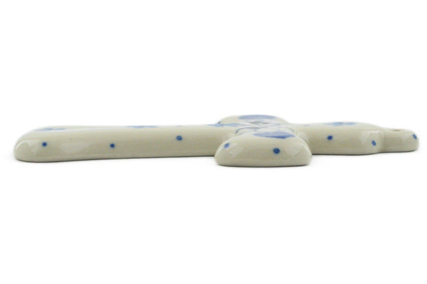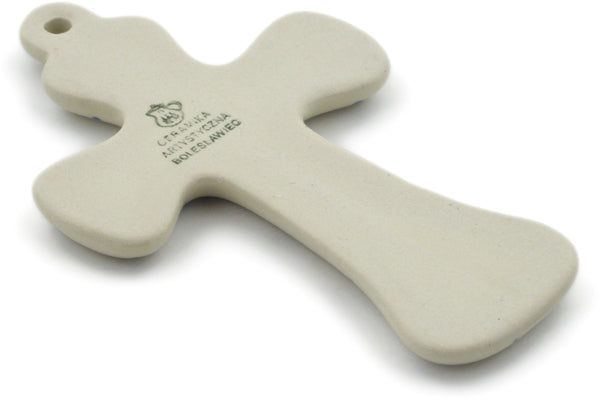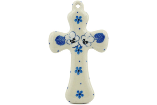 This White Pansy 5" Cross was handmade and hand decorated in Boleslawiec, Poland by skilled artisans according to old traditional methods. This Polish stoneware is microwave, dishwasher, freezer, and oven safe up to 480°F. It does not contain lead or cadmium. It is part of the White Pansy Collection.