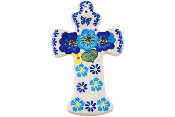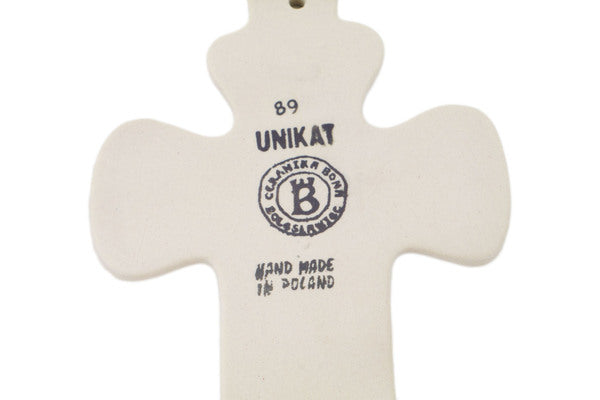 This Endless Summer 7" Cross was handmade and hand decorated in Boleslawiec, Poland by skilled artisans according to old traditional methods. This is a Polish pottery Signature Unikat, which means that it has been hand painted with both sponges and brushes and it is signed by the artist who painted it. Unikat pieces are the most intricate works of art. Larger Unikat items take hours of very careful work to finish. This Polish stoneware is microwave, dishwasher, freezer, and oven safe up to 480°F. It does not contain lead or cadmium. It is part of the Endless Summer Collection.