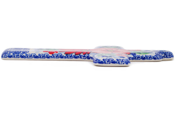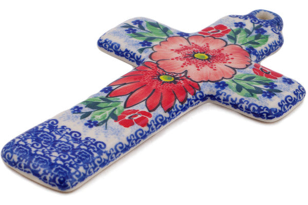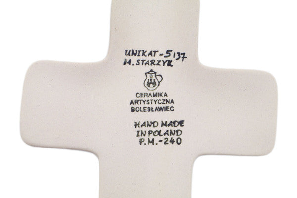This Peak Of Perfection 8" Cross was handmade and hand decorated in Boleslawiec, Poland by skilled artisans according to old traditional methods. This is a Polish pottery Signature Unikat, which means that it has been hand painted with both sponges and brushes and it is signed by the artist who painted it. Unikat pieces are the most intricate works of art. Larger Unikat items take hours of very careful work to finish. This Polish stoneware is microwave, dishwasher, freezer, and oven safe up to 480°F. It does not contain lead or cadmium. It is part of the Peak Of Perfection Collection.
