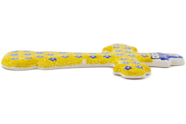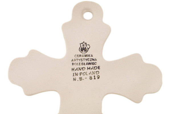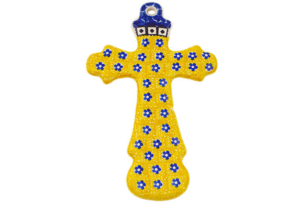 This Sunburst Daisies 8" Cross was handmade and hand decorated in Boleslawiec, Poland by skilled artisans according to old traditional methods. This Polish stoneware is microwave, dishwasher, freezer, and oven safe up to 480°F. It does not contain lead or cadmium. It is part of the Sunburst Daisies Collection.