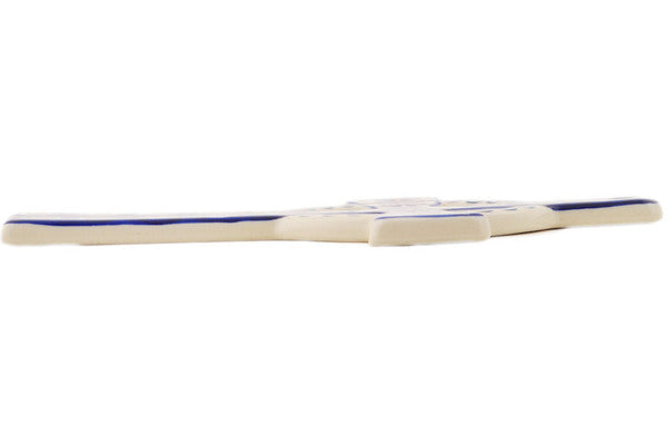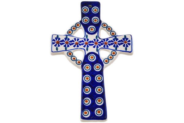 This Peacock 9" Cross was handmade and hand decorated in Boleslawiec, Poland by skilled artisans according to old traditional methods. This Polish stoneware is microwave, dishwasher, freezer, and oven safe up to 480°F. It does not contain lead or cadmium. It is part of the Peacock Collection.