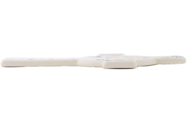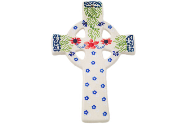 This Red Blossom 9" Cross was handmade and hand decorated in Boleslawiec, Poland by skilled artisans according to old traditional methods. This Polish stoneware is microwave, dishwasher, freezer, and oven safe up to 480°F. It does not contain lead or cadmium. It is part of the Red Blossom Collection.
