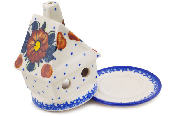 This Autumn Pansies 5" House Shaped Candle Holder was handmade and hand decorated in Boleslawiec, Poland by skilled artisans according to old traditional methods. This is a Polish pottery Signature Unikat, which means that it has been hand painted with both sponges and brushes and it is signed by the artist who painted it. Unikat pieces are the most intricate works of art. Larger Unikat items take hours of very careful work to finish. This Polish stoneware is microwave, dishwasher, freezer, and oven safe up to 480°F. It does not contain lead or cadmium. It is part of the Autumn Pansies Collection.