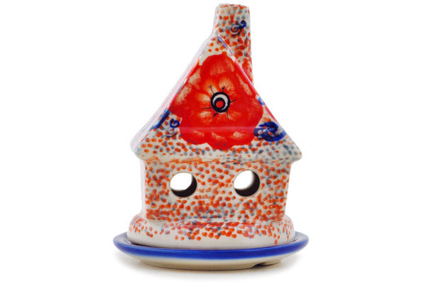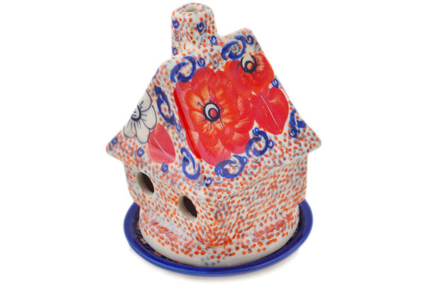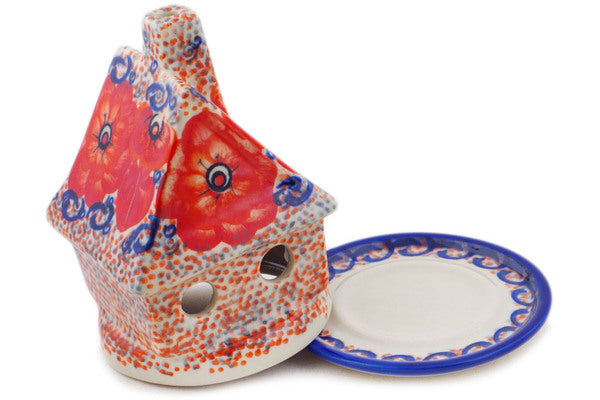 This Poppy Passion 5" House Shaped Candle Holder was handmade and hand decorated in Boleslawiec, Poland by skilled artisans according to old traditional methods. This is a Polish pottery Signature Unikat, which means that it has been hand painted with both sponges and brushes and it is signed by the artist who painted it. Unikat pieces are the most intricate works of art. Larger Unikat items take hours of very careful work to finish. This Polish stoneware is microwave, dishwasher, freezer, and oven safe up to 480°F. It does not contain lead or cadmium. It is part of the Poppy Passion Collection.