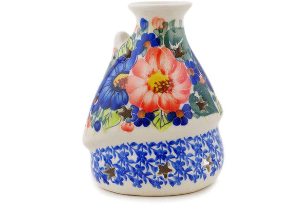 This Poppy Trio 5" House Shaped Candle Holder was handmade and hand decorated in Boleslawiec, Poland by skilled artisans according to old traditional methods. This is a Polish pottery Signature Unikat, which means that it has been hand painted with both sponges and brushes and it is signed by the artist who painted it. Unikat pieces are the most intricate works of art. Larger Unikat items take hours of very careful work to finish. This Polish stoneware is microwave, dishwasher, freezer, and oven safe up to 480°F. It does not contain lead or cadmium. It is part of the Poppy Trio Collection.