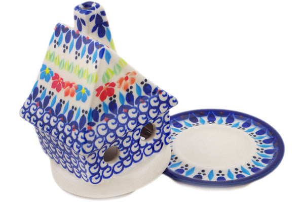 This Spring Flowers 5" House Shaped Candle Holder was handmade and hand decorated in Boleslawiec, Poland by skilled artisans according to old traditional methods. This Polish stoneware is microwave, dishwasher, freezer, and oven safe up to 480°F. It does not contain lead or cadmium. It is part of the Spring Flowers Collection.