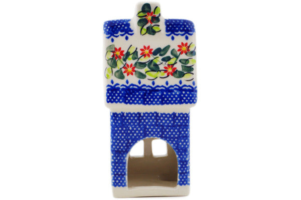 This Elegant Garland 6" House Shaped Candle Holder was handmade and hand decorated in Boleslawiec, Poland by skilled artisans according to old traditional methods. This Polish stoneware is microwave, dishwasher, freezer, and oven safe up to 480°F. It does not contain lead or cadmium. It is part of the Elegant Garland Collection.