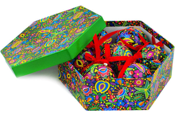 This Krakow 3" Ornament Box Set of 7 was handmade and hand decorated in Boleslawiec, Poland by skilled artisans according to old traditional methods. This Polish stoneware is microwave, dishwasher, freezer, and oven safe up to 480°F. It does not contain lead or cadmium. It is part of the Krakow Collection.
