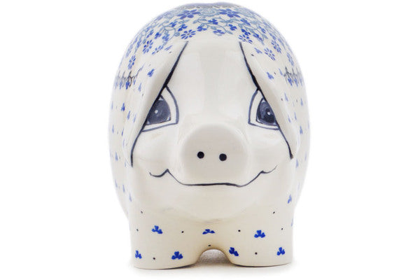 This Blue Country Field 9" Piggy Bank was handmade and hand decorated in Boleslawiec, Poland by skilled artisans according to old traditional methods. This Polish stoneware is microwave, dishwasher, freezer, and oven safe up to 480°F. It does not contain lead or cadmium. It is part of the Blue Country Field Collection.