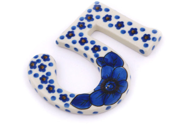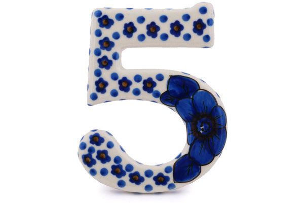 House Number FIVE (Five) 4-inch Cobalt Poppies Theme UNIKAT