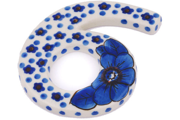 House Number SIX (6) 4-inch Cobalt Poppies Theme UNIKAT
