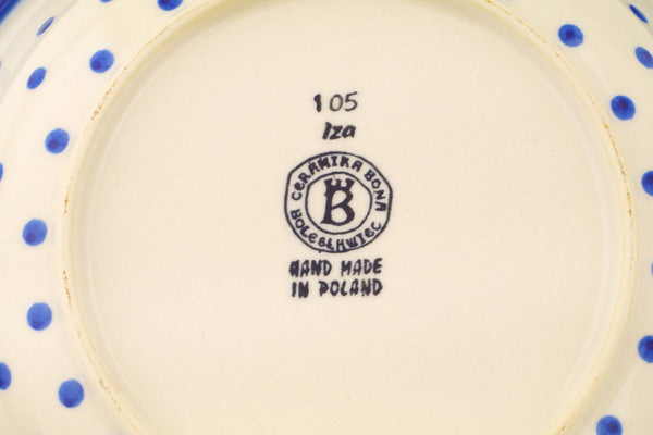 This Blue Polka Dot 9" Pasta Bowl was handmade and hand decorated in Boleslawiec, Poland by skilled artisans according to old traditional methods. This Polish stoneware is microwave, dishwasher, freezer, and oven safe up to 480°F. It does not contain lead or cadmium. It is part of the Blue Polka Dot Collection.