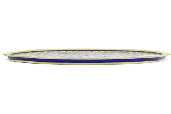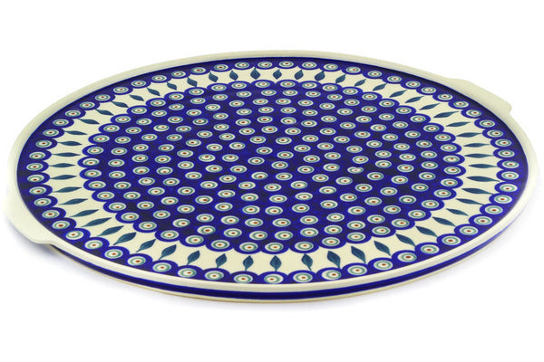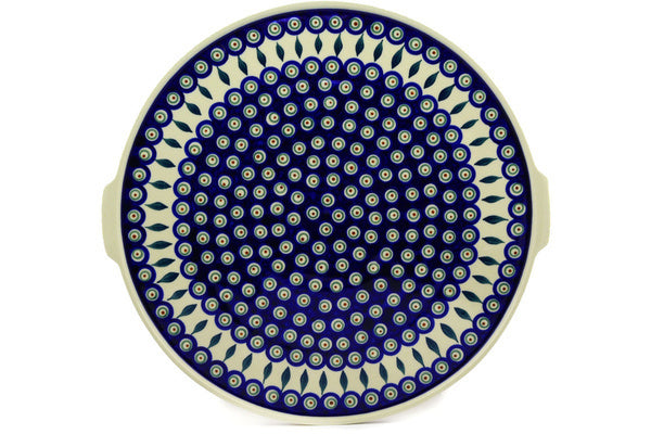 This Peacock Leaves 17" Pizza Plate was handmade and hand decorated in Boleslawiec, Poland by skilled artisans according to old traditional methods. This Polish stoneware is microwave, dishwasher, freezer, and oven safe up to 480°F. It does not contain lead or cadmium. It is part of the Peacock Leaves Collection.