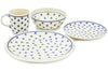 This Forget-me-not Field 4-Piece Place Setting was handmade and hand decorated in Boleslawiec, Poland by skilled artisans according to old traditional methods. This Polish stoneware is microwave, dishwasher, freezer, and oven safe up to 480°F. It does not contain lead or cadmium. It is part of the Forget-me-not Field Collection.