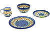 This Golden Flower Garden 4-Piece Place Setting was handmade and hand decorated in Boleslawiec, Poland by skilled artisans according to old traditional methods. This Polish stoneware is microwave, dishwasher, freezer, and oven safe up to 480°F. It does not contain lead or cadmium. It is part of the Golden Flower Garden Collection.