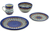 This Peacock Pines 4-Piece Place Setting was handmade and hand decorated in Boleslawiec, Poland by skilled artisans according to old traditional methods. This Polish stoneware is microwave, dishwasher, freezer, and oven safe up to 480°F. It does not contain lead or cadmium. It is part of the Peacock Pines Collection.