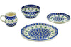 This Spring Garden Berries 4-Piece Place Setting was handmade and hand decorated in Boleslawiec, Poland by skilled artisans according to old traditional methods. This is a Polish pottery Signature Unikat, which means that it has been hand painted with both sponges and brushes and it is signed by the artist who painted it. Unikat pieces are the most intricate works of art. Larger Unikat items take hours of very careful work to finish. This Polish stoneware is microwave, dishwasher, freezer, and oven safe up to 480°F. It does not contain lead or cadmium. It is part of the Spring Garden Berries Collection.
