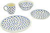 This Blue Daisy Delight Place Setting was handmade and hand decorated in Boleslawiec, Poland by skilled artisans according to old traditional methods. This Polish stoneware is microwave, dishwasher, freezer, and oven safe up to 480°F. It does not contain lead or cadmium. It is part of the Blue Daisy Delight Collection.