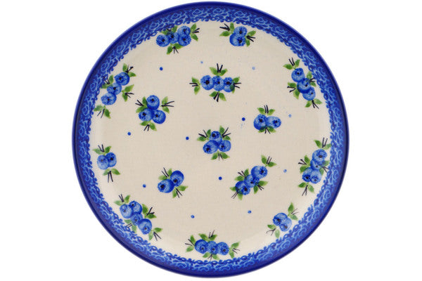This Blueberry Dreams 7½-inch Dessert Plate was handmade and hand decorated in Boleslawiec, Poland by skilled artisans according to old traditional methods. This Polish stoneware is microwave, dishwasher, freezer, and oven safe up to 480°F. It does not contain lead or cadmium. It is part of the Blueberry Dreams Collection.
