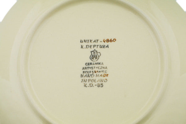 This Golden Autumn 8" Dessert Plate was handmade and hand decorated in Boleslawiec, Poland by skilled artisans according to old traditional methods. This is a Polish pottery Signature Unikat, which means that it has been hand painted with both sponges and brushes and it is signed by the artist who painted it. Unikat pieces are the most intricate works of art. Larger Unikat items take hours of very careful work to finish. This Polish stoneware is microwave, dishwasher, freezer, and oven safe up to 480°F. It does not contain lead or cadmium. It is part of the Golden Autumn Collection.