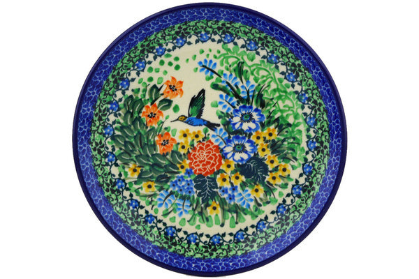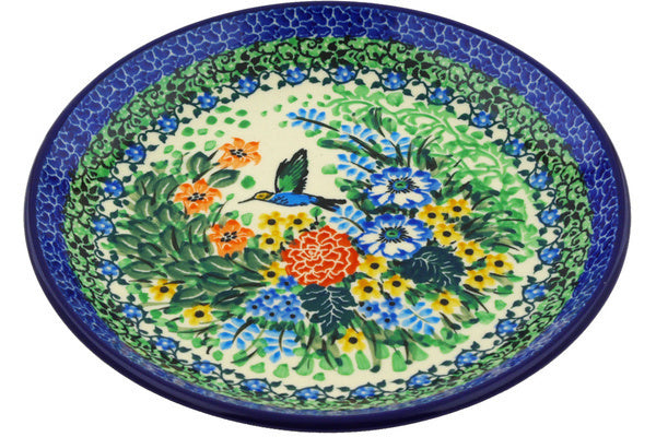 This Hummingbird Meadow 8" Dessert Plate was handmade and hand decorated in Boleslawiec, Poland by skilled artisans according to old traditional methods. This is a Polish pottery Signature Unikat, which means that it has been hand painted with both sponges and brushes and it is signed by the artist who painted it. Unikat pieces are the most intricate works of art. Larger Unikat items take hours of very careful work to finish. This Polish stoneware is microwave, dishwasher, freezer, and oven safe up to 480°F. It does not contain lead or cadmium. It is part of the Hummingbird Meadow Collection.