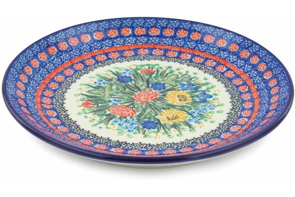 This Amazing Ideal 10½-inch Dinner Plate was handmade and hand decorated in Boleslawiec, Poland by skilled artisans according to old traditional methods. This is a Polish pottery Signature Unikat, which means that it has been hand painted with both sponges and brushes and it is signed by the artist who painted it. Unikat pieces are the most intricate works of art. Larger Unikat items take hours of very careful work to finish. This Polish stoneware is microwave, dishwasher, freezer, and oven safe up to 480°F. It does not contain lead or cadmium. It is part of the Amazing Ideal Collection.