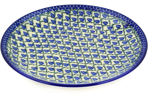 This Aspen Leaf Trellis 10½-inch Dinner Plate was handmade and hand decorated in Boleslawiec, Poland by skilled artisans according to old traditional methods. This Polish stoneware is microwave, dishwasher, freezer, and oven safe up to 480°F. It does not contain lead or cadmium. It is part of the Aspen Leaf Trellis Collection.
